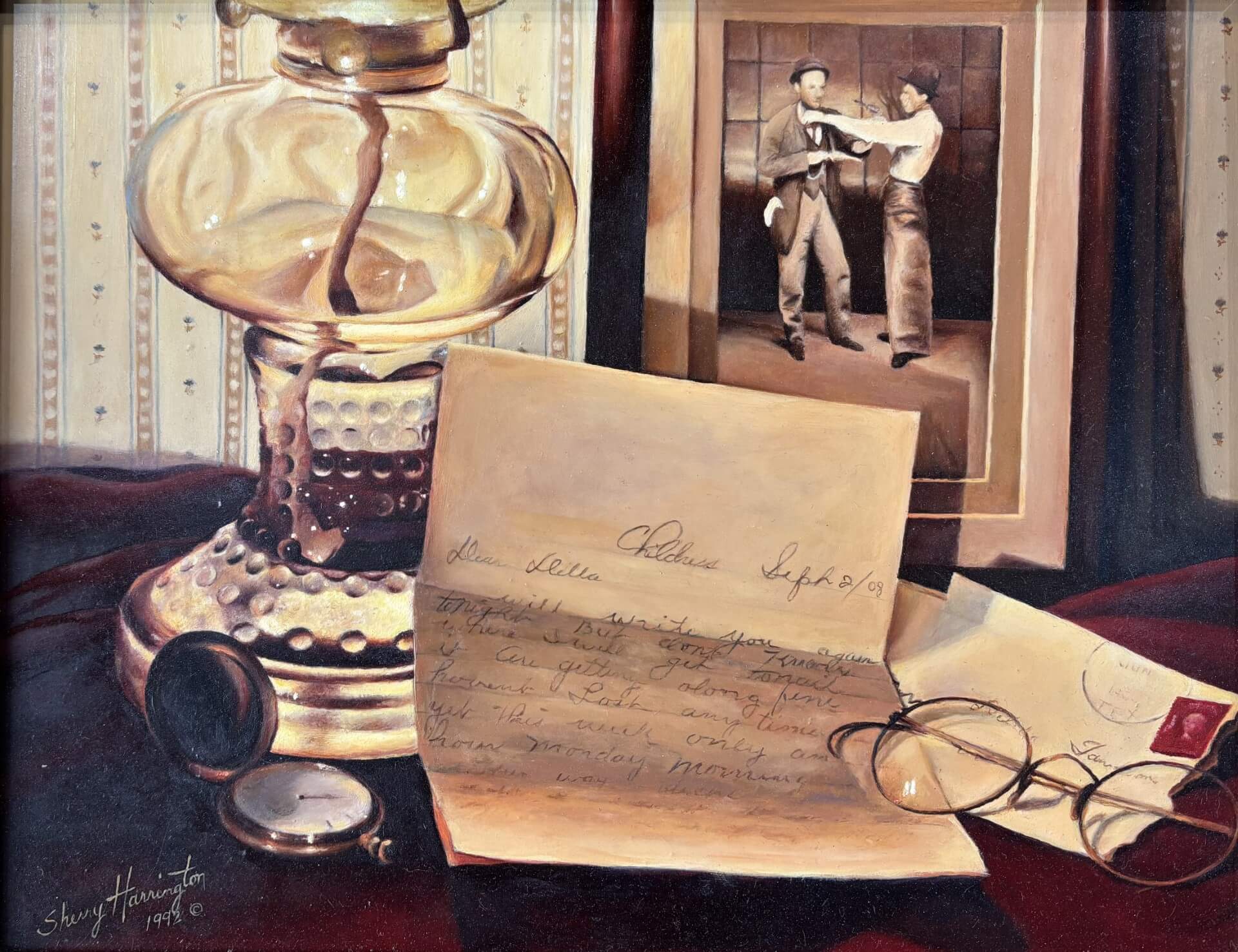 Sherry Harrington Still Life with Pocket Watch and Letter Oil on canvas 11 x 14